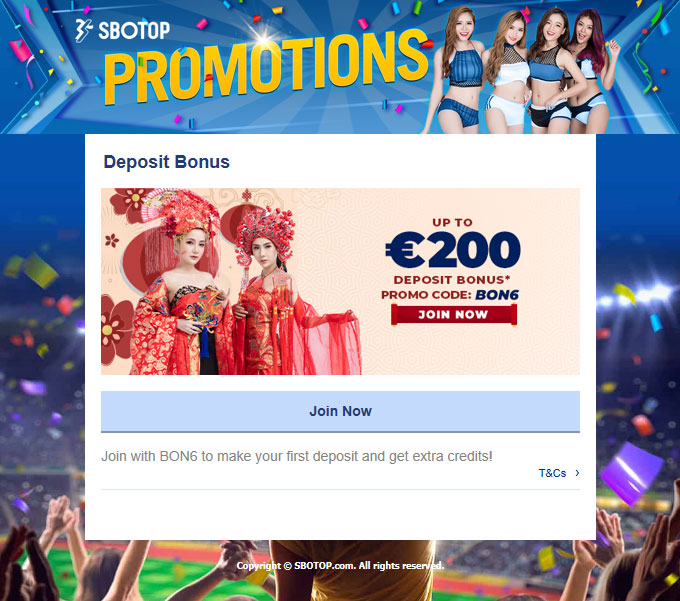 There are several mouth-watering promotions available for both new and existing players to SBOTOP online casino. One of the best promos available for new players as of writing this article is the deposit bonus which can go up as high as EUR200. This is a great way to get your game on and start to earn big from SBOTOP.
