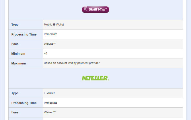 Some accepted medium of payment includes direct card payments via Mastercard or Visa, digital banks such as Skrill and Neteller can also be used for deposits and withdrawals. If you have a penchant for traditional forms of payment, then direct account payments via Telegraphic transfer is also available to the users.
